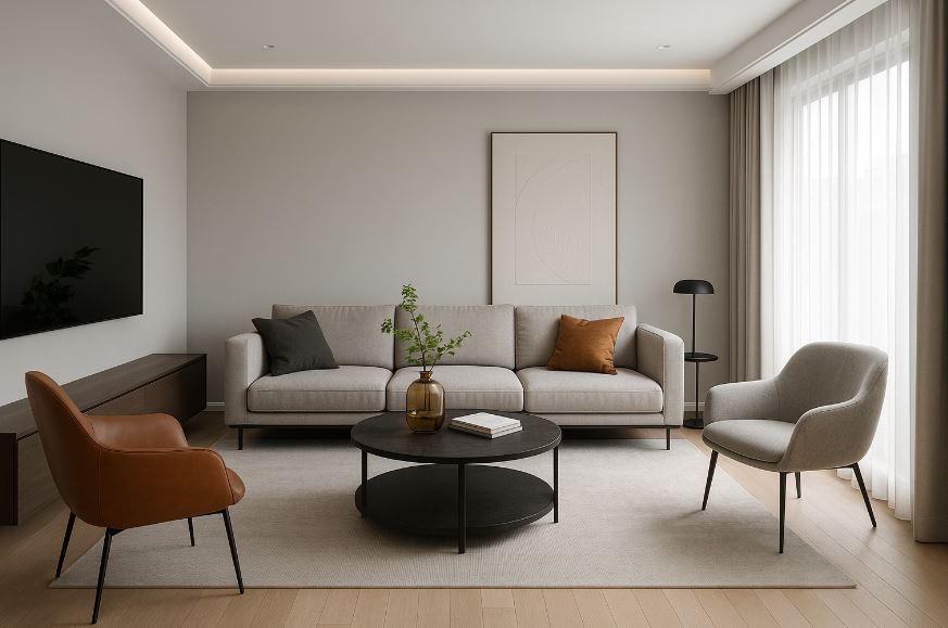 結合空間動線與家具擺放,建議在客廳打造專屬視聽區,搭配舒適的沙發、高解析電視與隔音牆面設計,不僅提升生活質感,更讓高雄透天裝潢更具機能性與現代感。