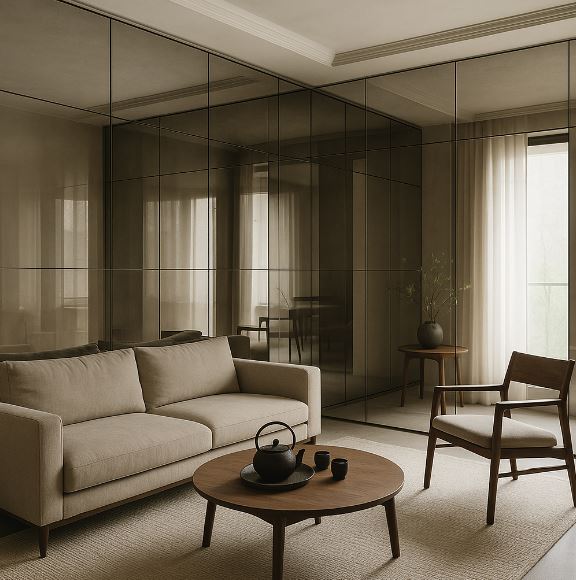 茶鏡可作為側牆或櫃面,營造柔和氛圍與高級感。