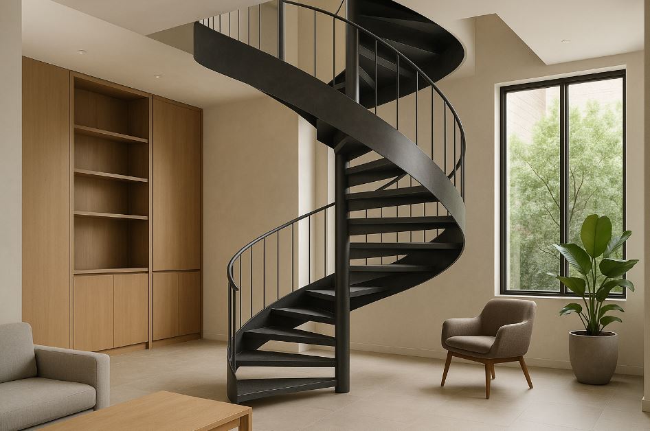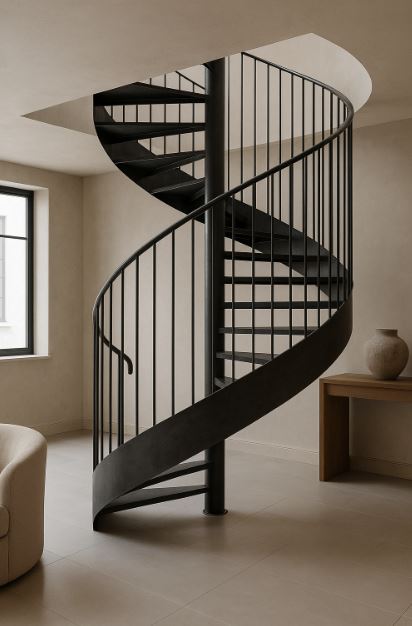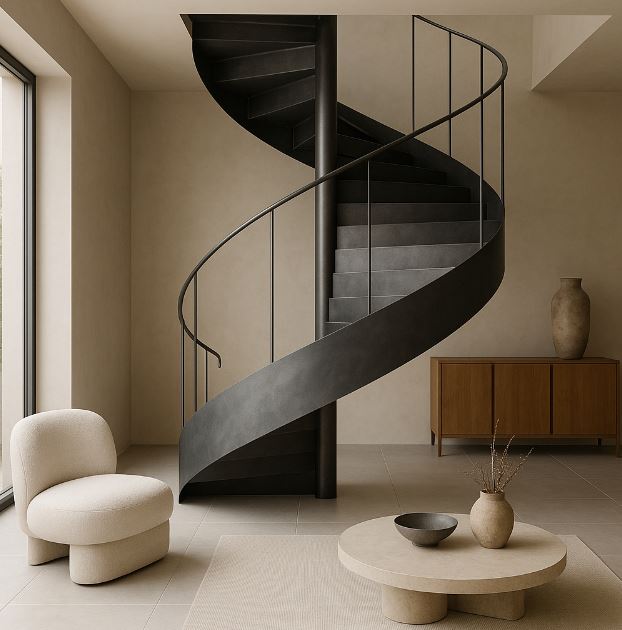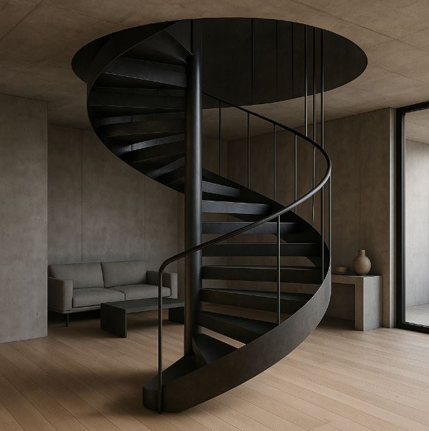 金屬螺旋樓梯集省坪效、通風與視覺焦點於一身;要好走又安全,除了外觀,更要把幾何比例、荷重假定、樞柱與骨架設計講清楚。