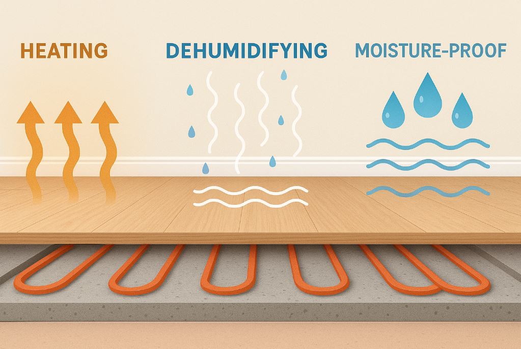 台灣秋冬常見「濕冷滲骨、地板冰涼、返潮發霉」,夏季又悶濕難散。